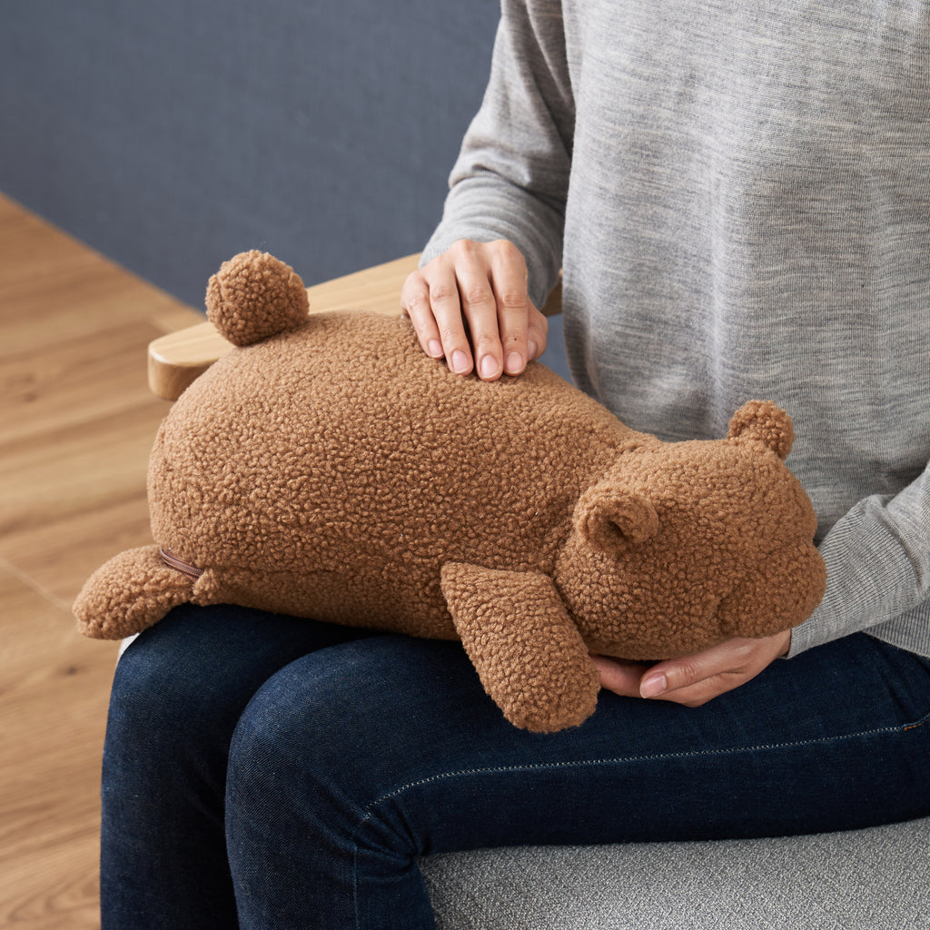 ベッドやソファなどどこでも一緒に過ごせるコードレス設計。温めたい場所にのせたり、抱きしめて温もりを感じるのも◎。