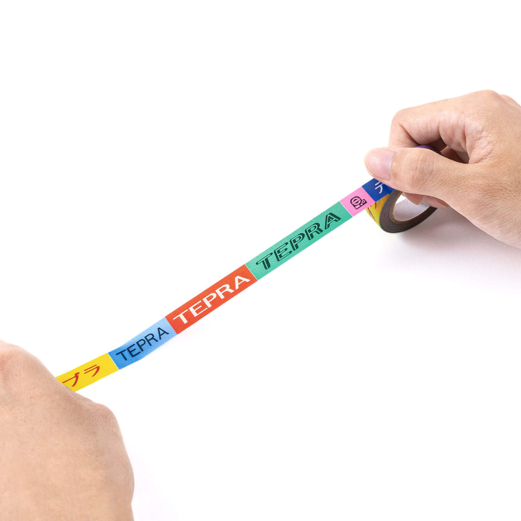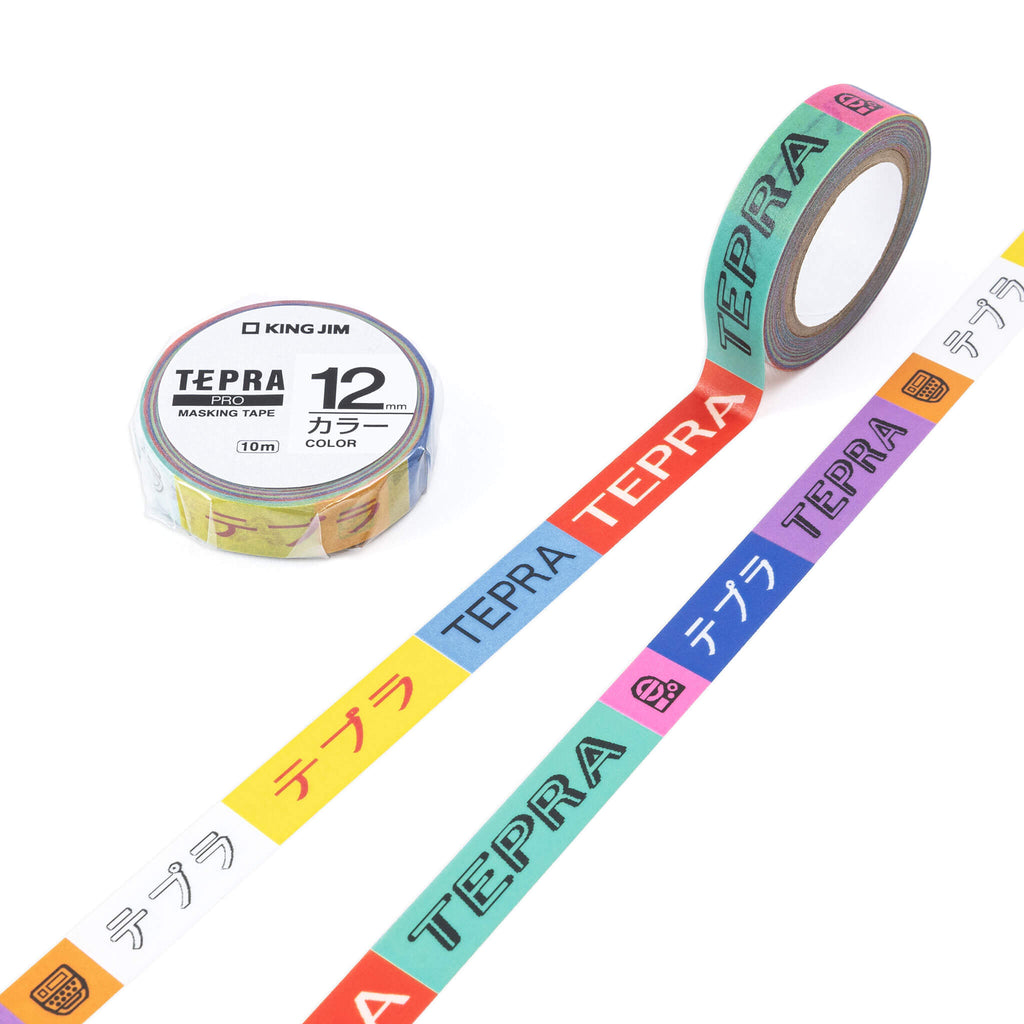 「テプラ」のラベルに合わせた12mm幅で、カラフルな「テプラ」のラベルの色味にもこだわりました。ノートや手帳、ラッピングのアクセントにいかがでしょうか。