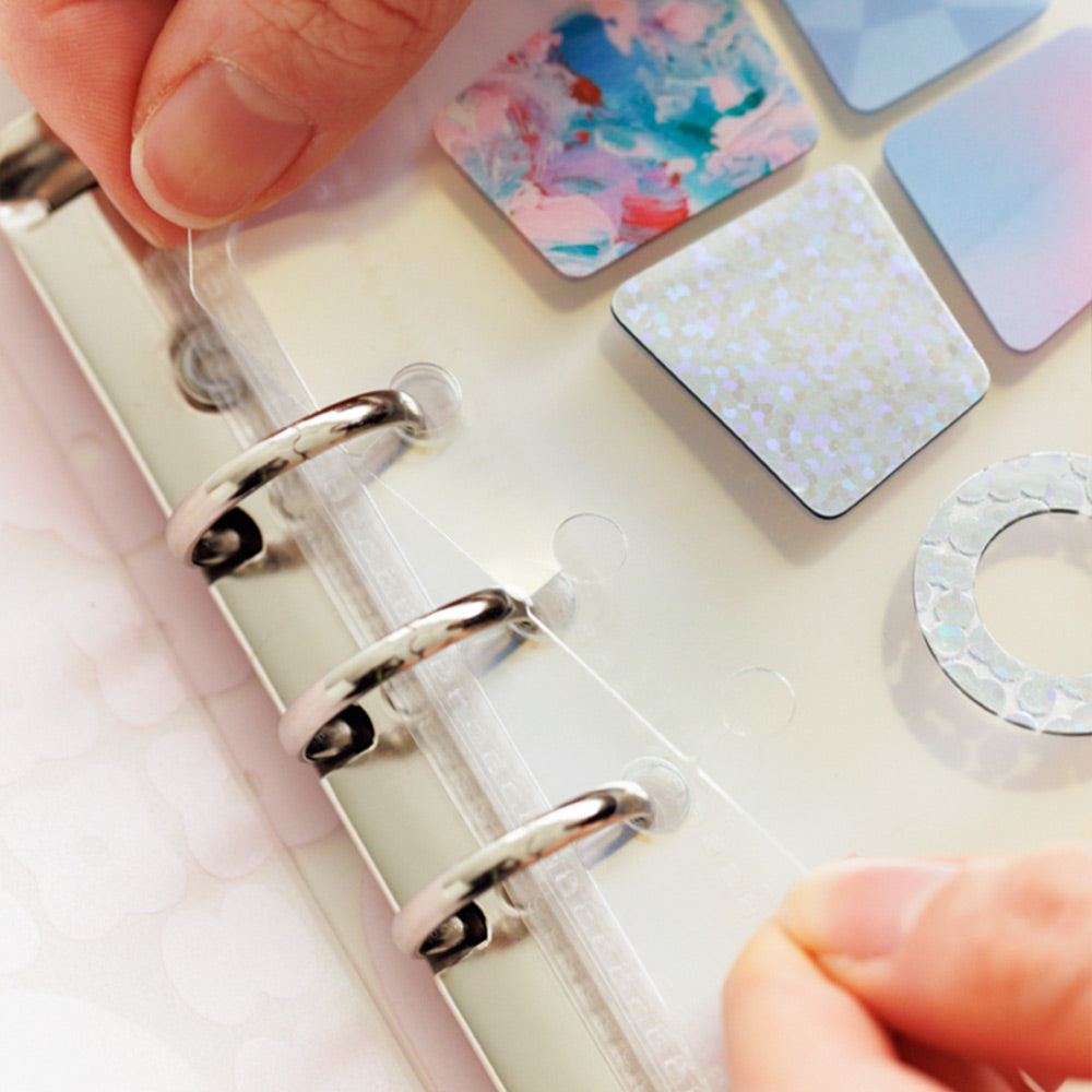 ●シールの厚みや重さによっては、リングから台紙が外れやすくなる場合があります。