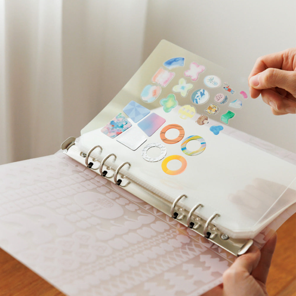 「キングミニ」「ファブラブ」「オトナのシールコレクション バインダータイプ」で使える、別売りの透明シール台紙です。