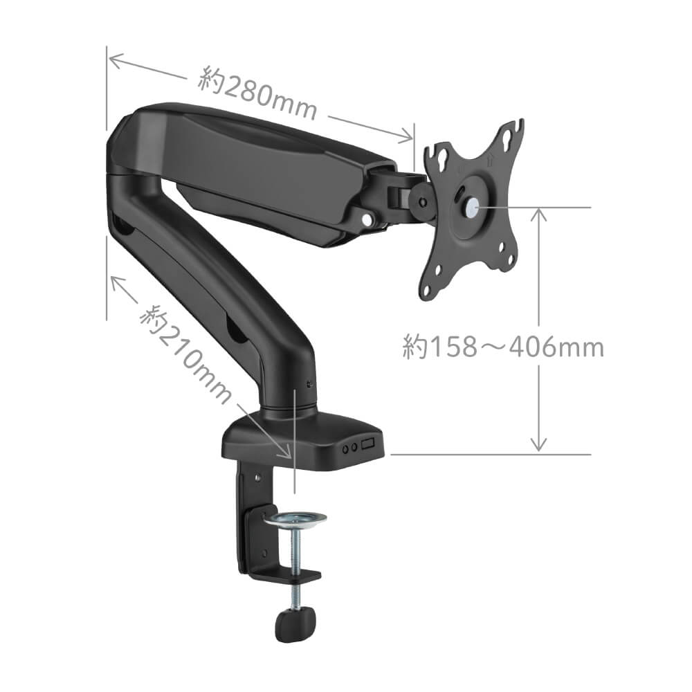 | 耐荷重(モニター質量) | 2~9kg※2kg未満のモニターの場合、任意の高さで止めることができません。 |