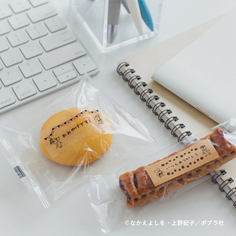 「テプラ」PRO用アプリ「Hello」から、「ねずみくんのチョッキ」のテンプレートや絵文字が印刷できます。