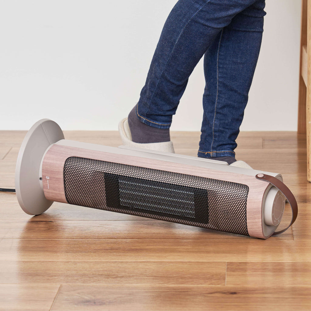 木目柄とレザー調ハンドルがおしゃれな、見せ置きできるヒーター。
